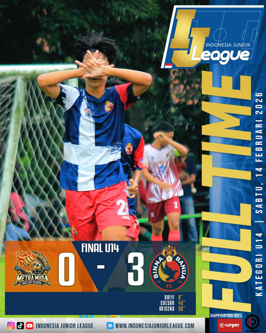 Binna Banua mencatatkan torehan manis di partai puncak IJL U-14. Berhadapan dengan Metra Muda, Adric Gunadi dan kawan-kawan unggul lewat dua gol tanpa balas.