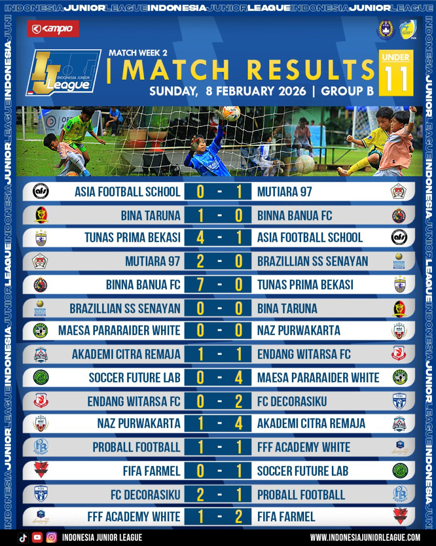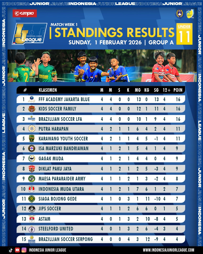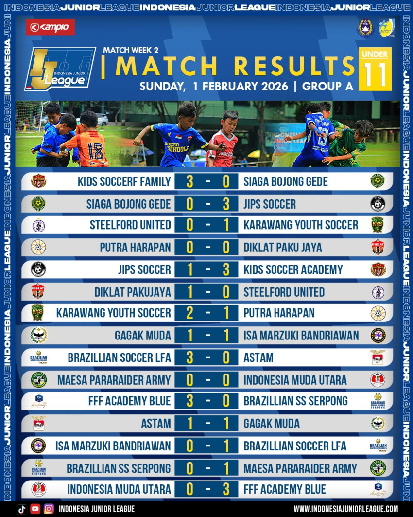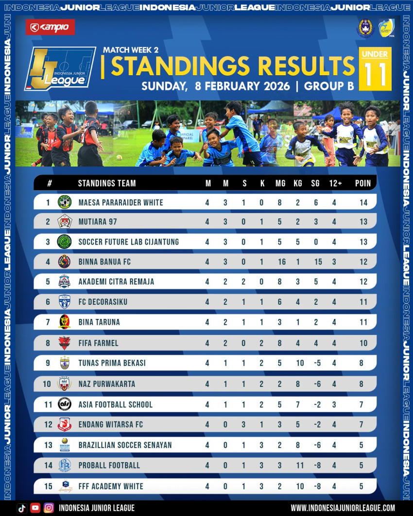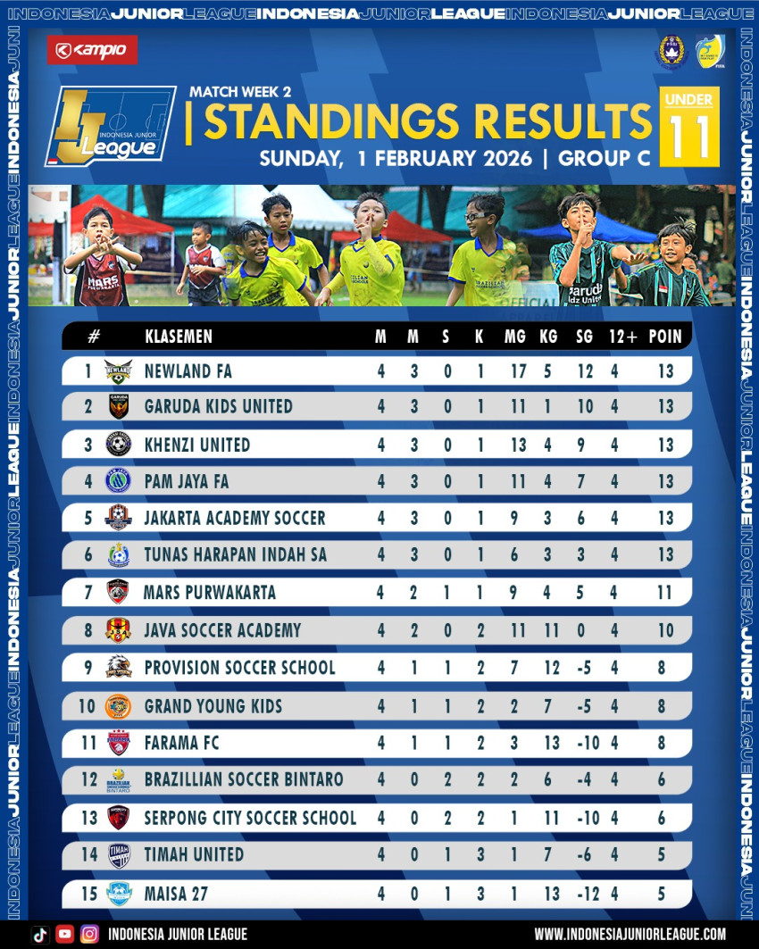 IJL.Com- Peta persaingan di Indonesia Junior League U-11 Grup C semakin mendidih di pekan kedua. Grup A masih ada tim yang belum tersentuh, sedangkan di Grup B terlihat jelas jalan masih panjang.