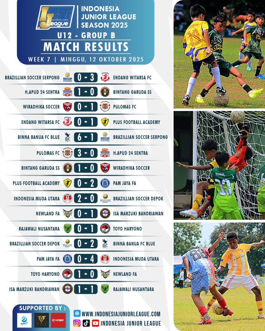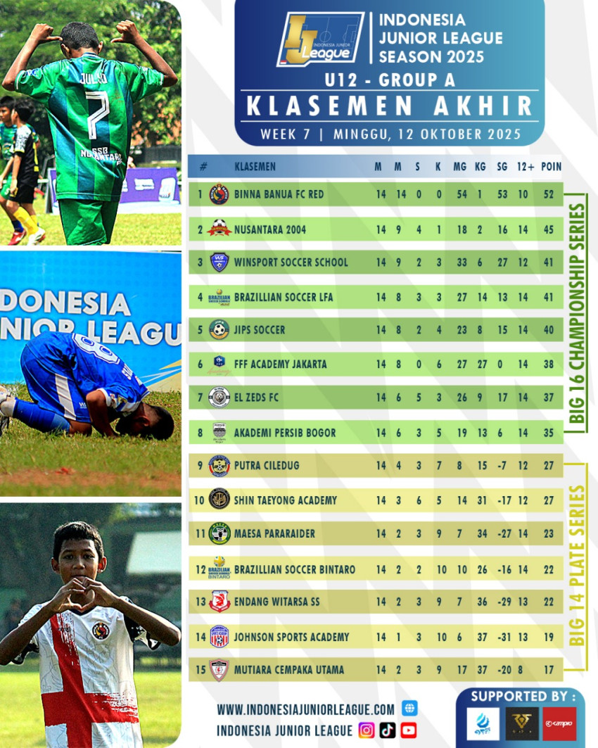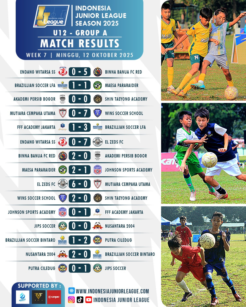 Pekan ketujuh IJL U-12 sebagai etape terakhir penyisihan grup rampung digelar pada Minggu (12/10). Ada kejutan yang cukup membetot mata.