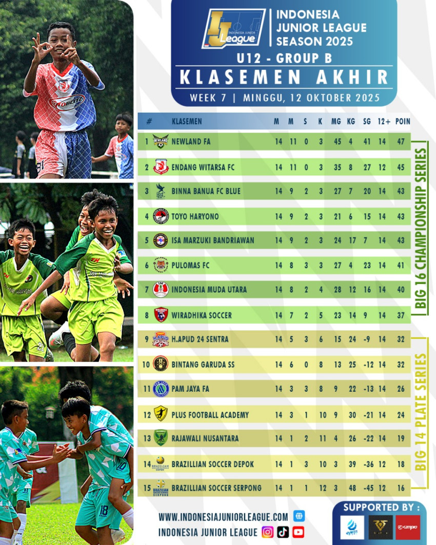 Di Grup B, Newland FA seperti kehabisan bensin di pekan ketujuh. Meskipun berhasil menyegel rangking pertama sebagai modal di 16 Besar, tim asal Kota Depok tersebut terpaksa mengakui keunggulan ISA Marzuki Bandriawan dan SSB Toyo Haryono.