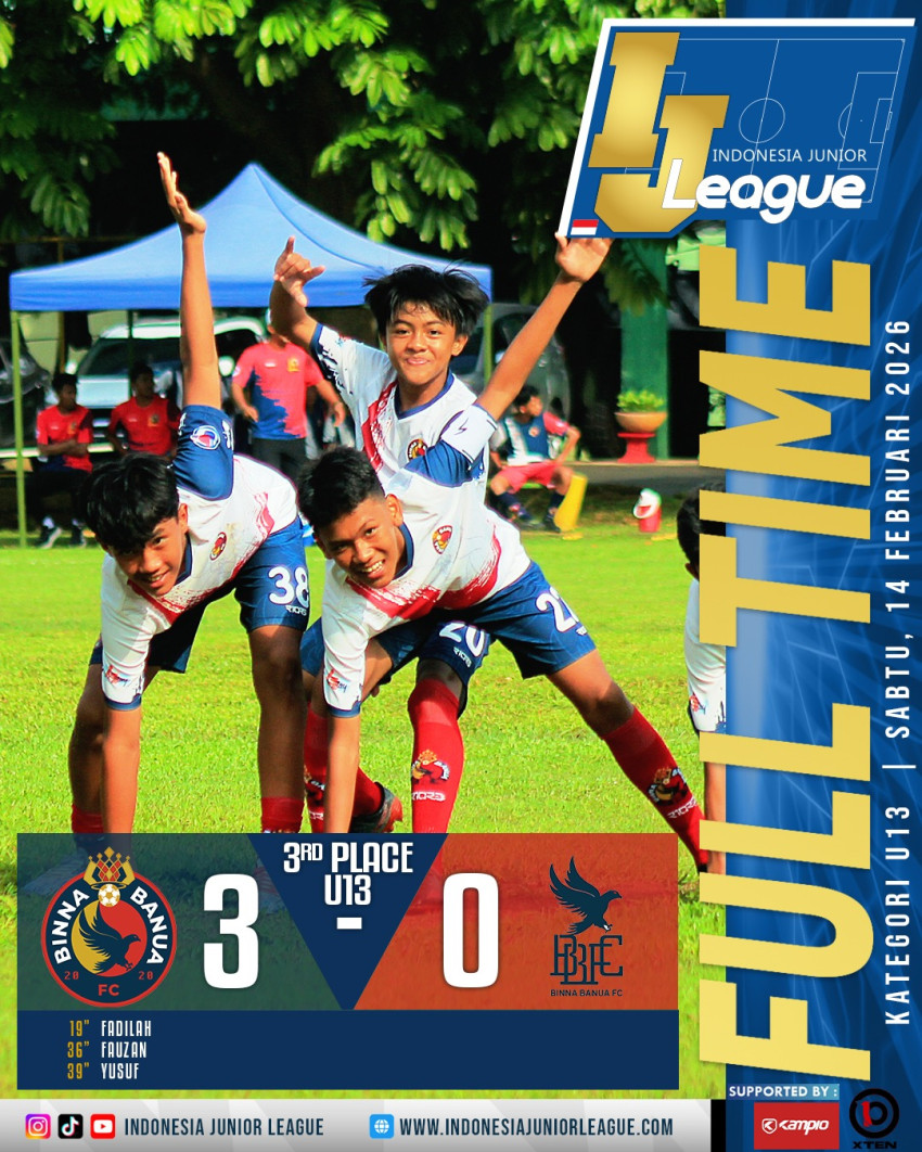 Gol pertama pun lahir lewat kaki Muhammad 'Mbappe' Fadilah demi mengunci dirinya sebagai top skorer pula di IJL U-13.