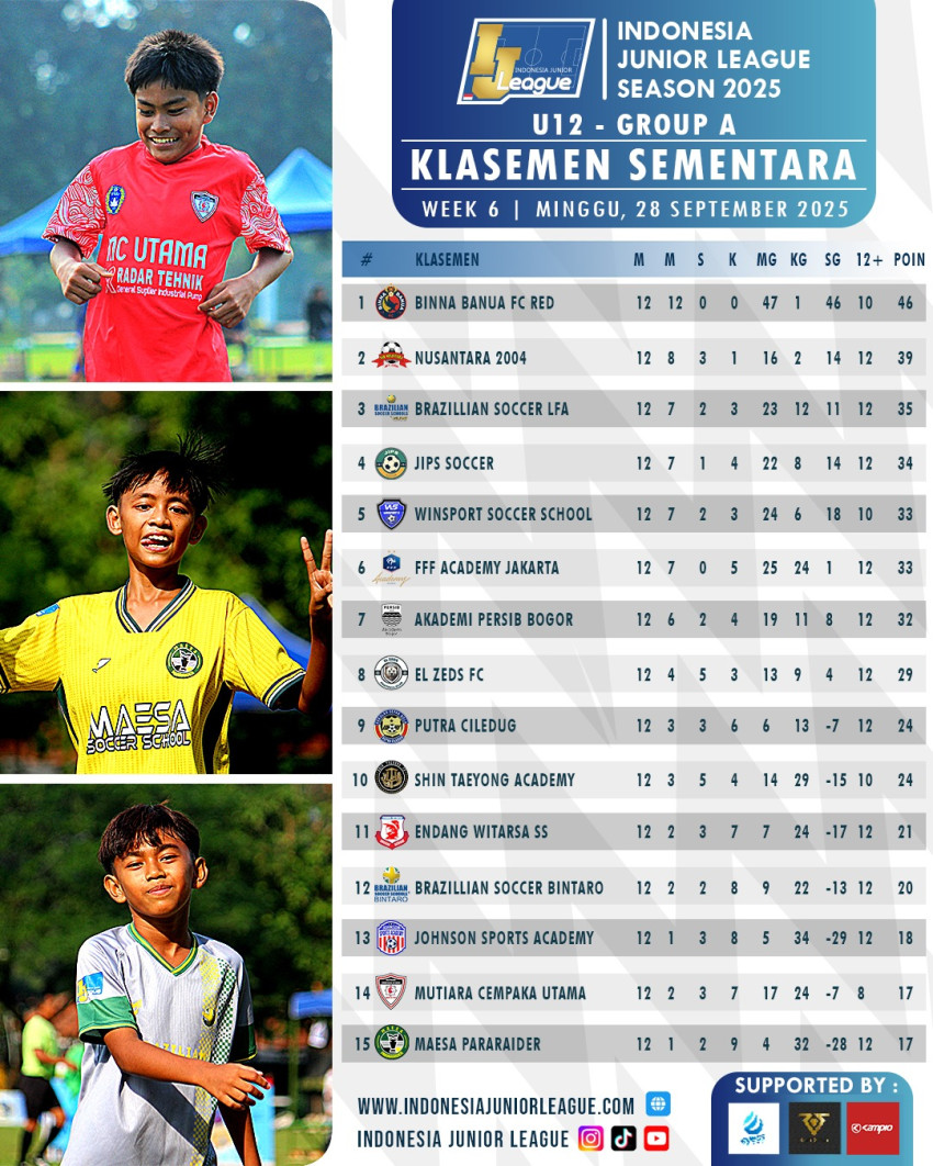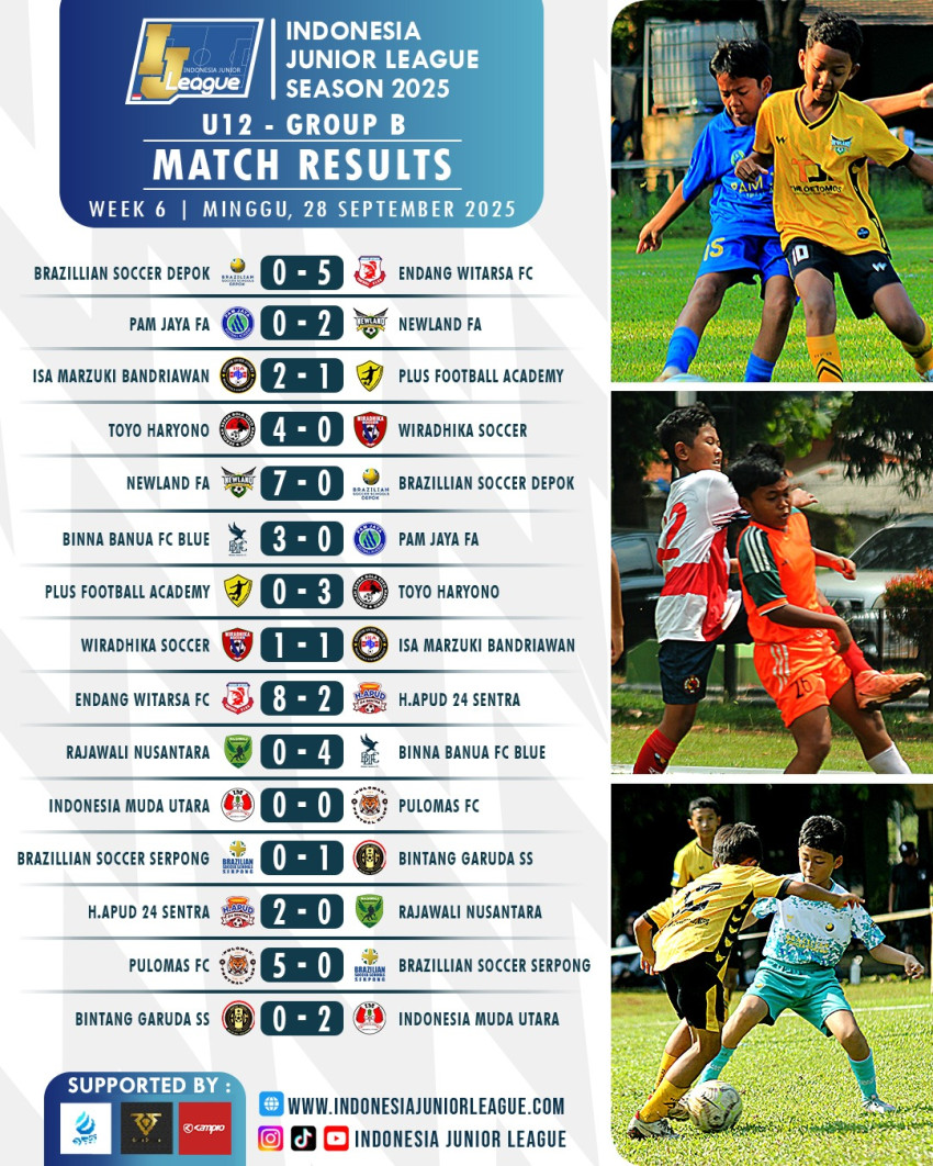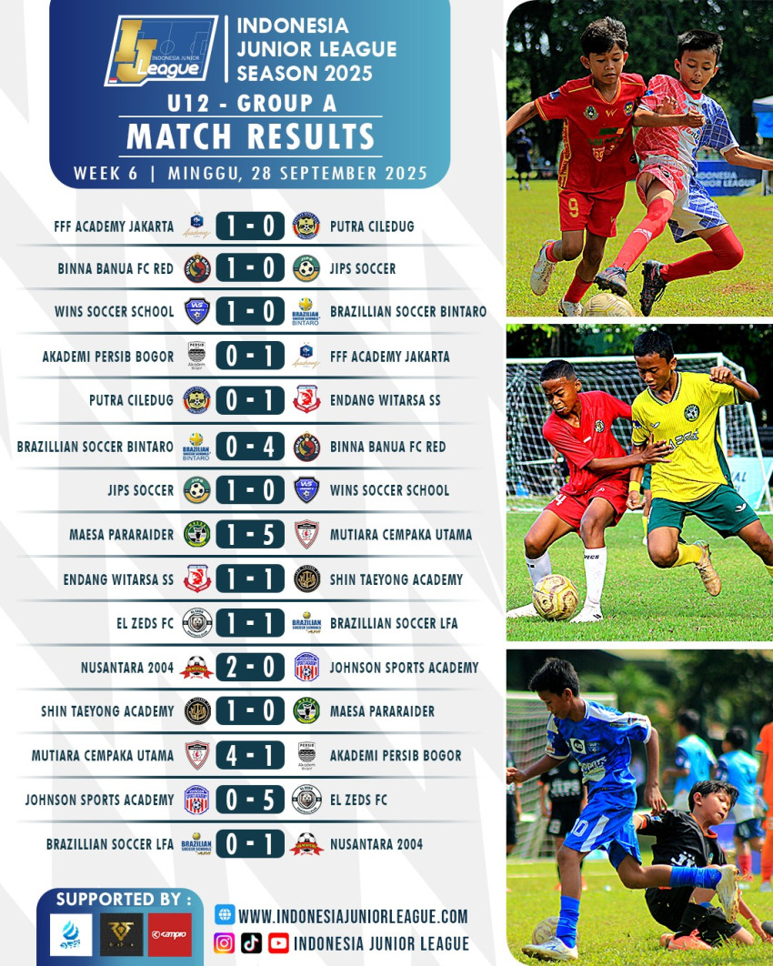 Pekan keenam IJL U-12 diwarnai kejutan yang mencegangkan. Persaingan terbukti sudah masuk kategori trek licin.