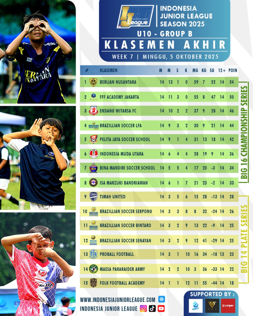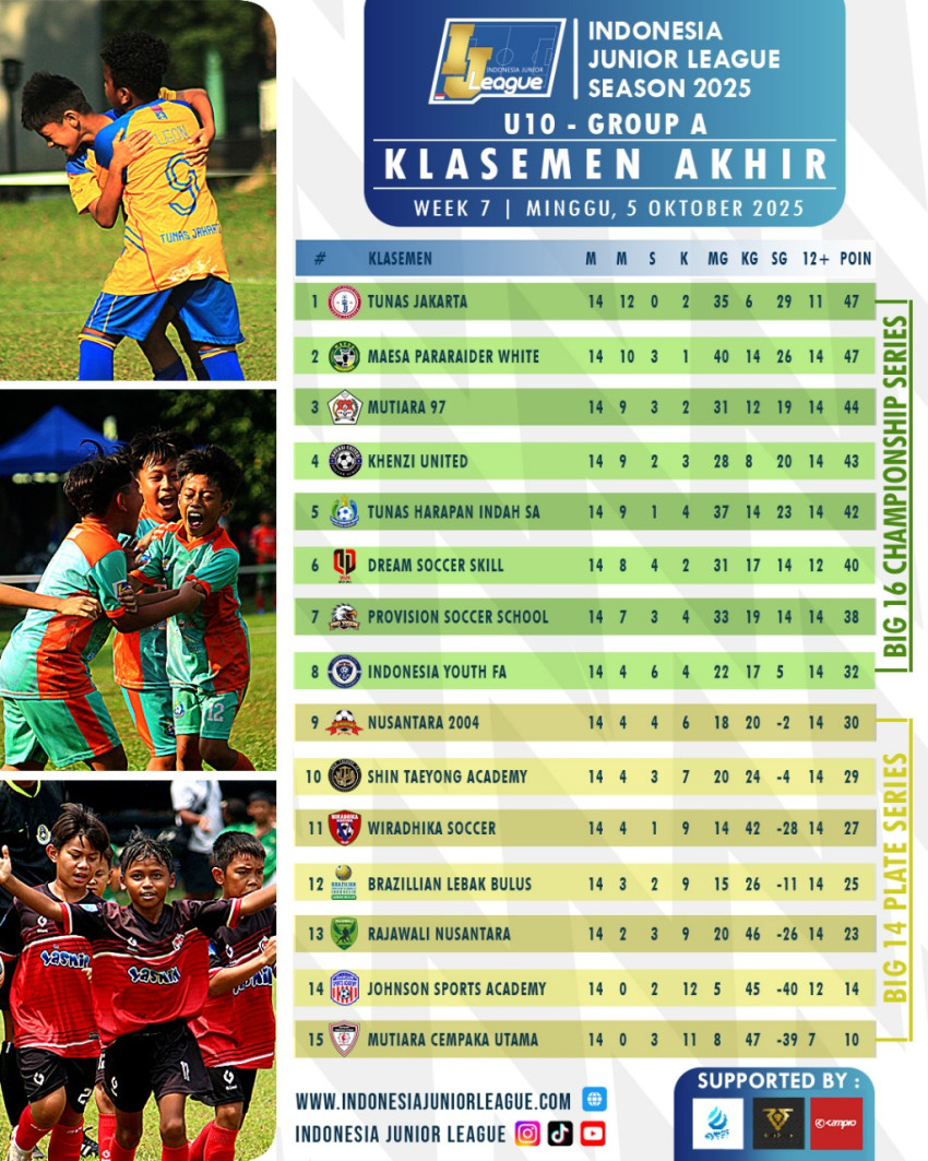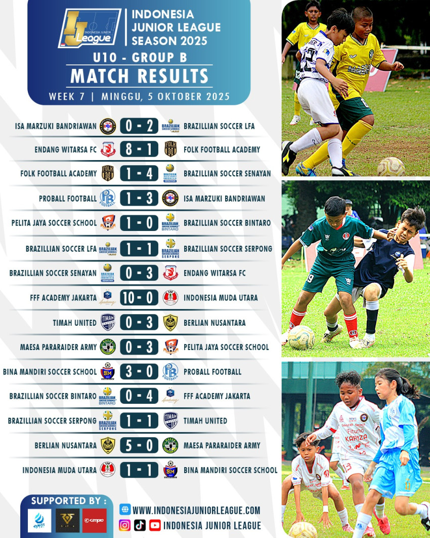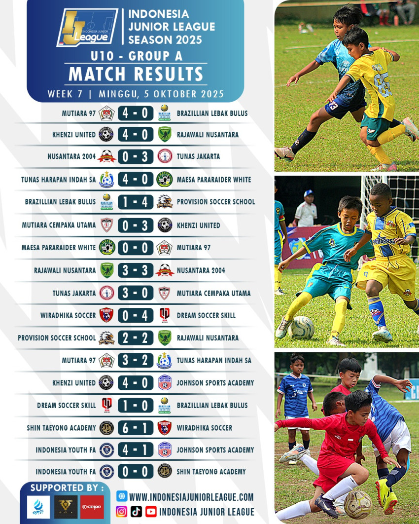 Pekan ketujuh Indonesia Junior League U-10 jadi etape terakhir penyisihan grup sebelum menuju fase selanjutnya. Tak pelak, tim-tim kontestan gencar berburu modal.